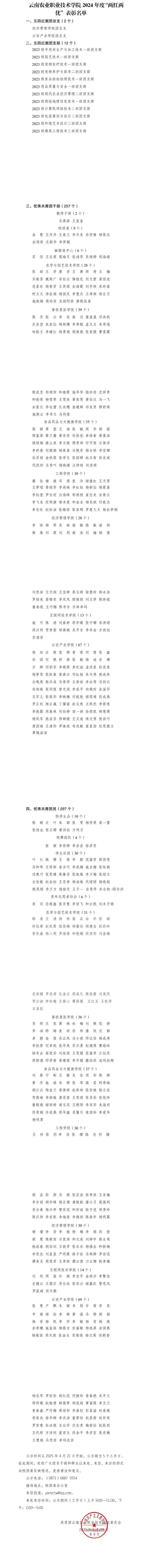 共青团云南农业职业技术学院委员会关于表彰 2024 年度“五四红旗团总支”“五四红旗团支 部”“优秀共青团员”“优秀共青团干部”的 决定