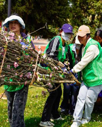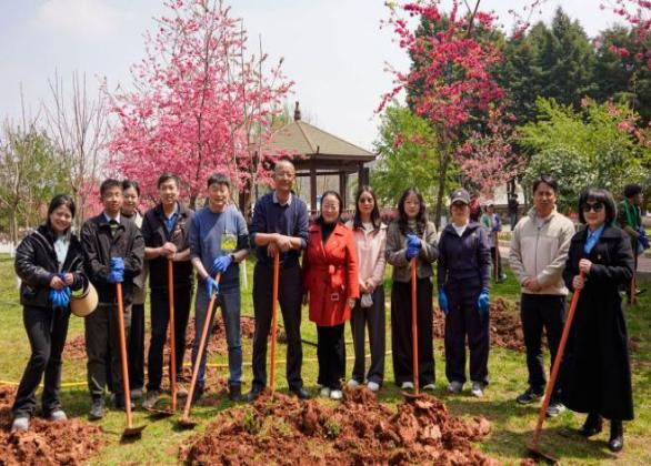 学生组织校领导莅临现场,与志愿者共植新绿