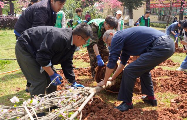 在我国第48个植树节来临之际,为践行“绿水青山就是金山银山”的理念,培养师生植绿护绿的环保意识,我校青年志愿者协会组织开展植树节植树活动。校领导莅临现场,与30余名青年志愿者一同前往校园共青团林参与植树,以实际行动为春日校园增添绿色生机。