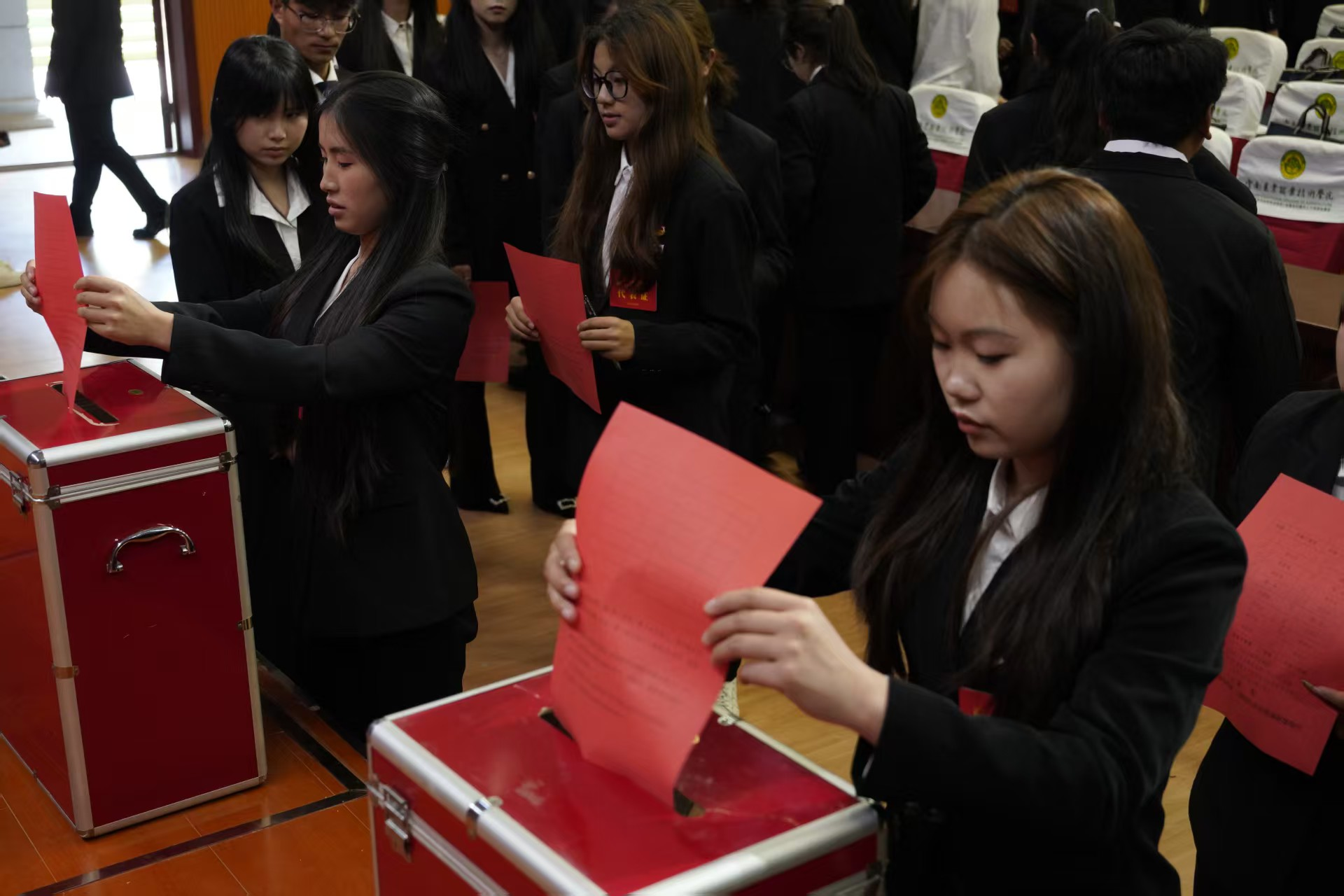 13:00,第二次全体会议(第一阶段)严格遵循民主集中制原则,代表们通过无记名差额投票,选举产生新一届学生会委员会委员,为学生工作注入“政治过硬、本领高强”的新生力量。