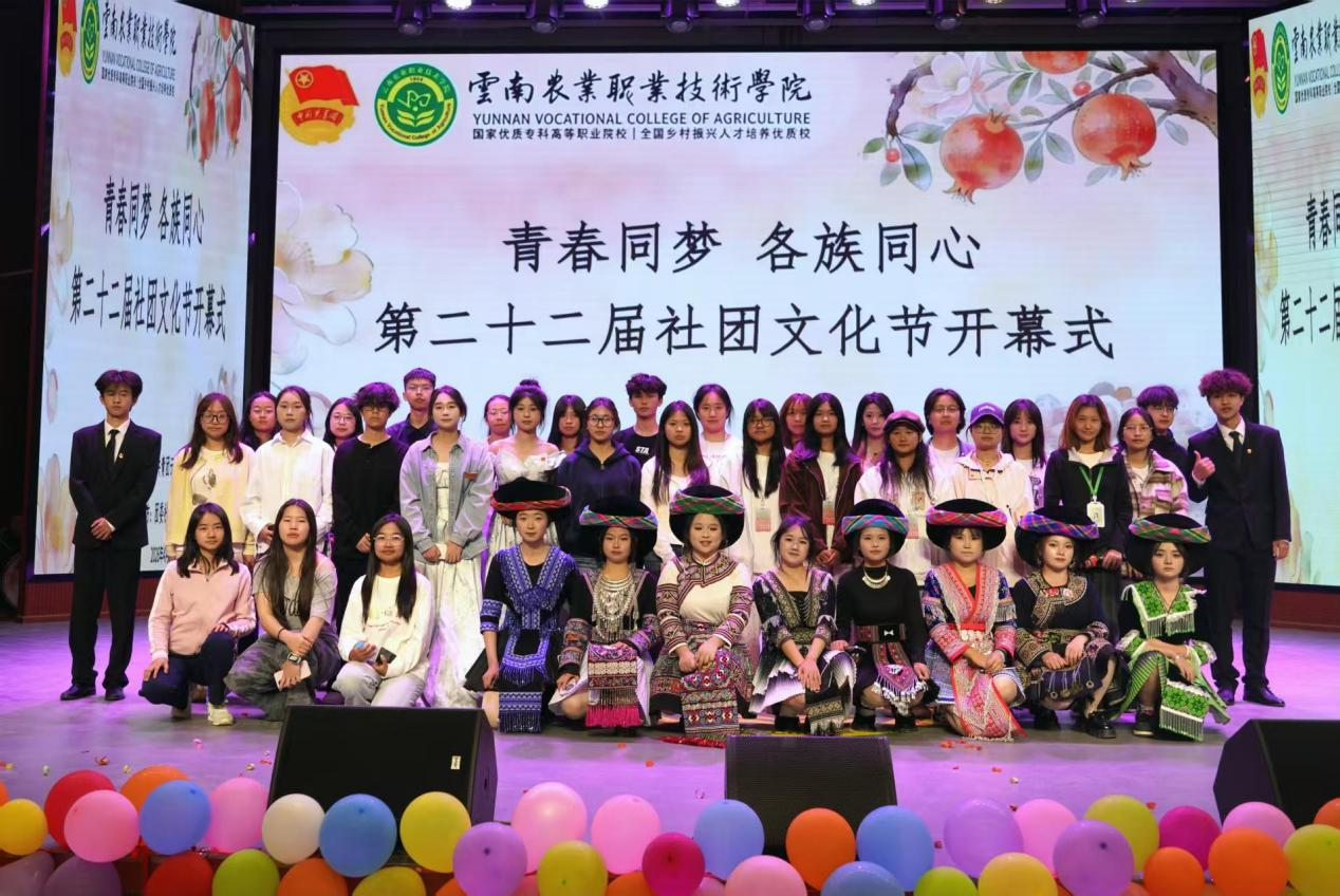 通知中心为丰富校园文化生活,促进社团交流发展,厚植民族团结情怀,4月10日,云南农业职业技术学院以“青春同梦,民族同心”为主题的第二十二届社团文化艺术节开幕式在小哨校区足球场与蚕桑礼堂顺利举办。