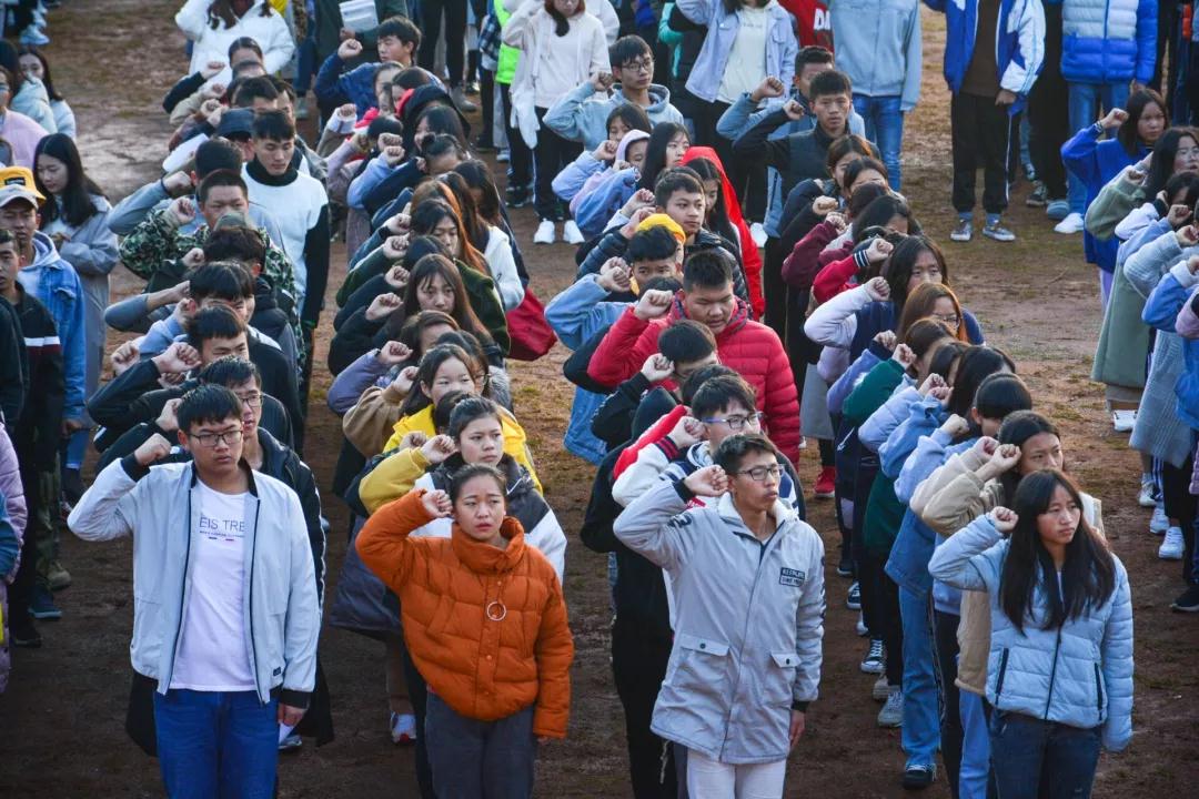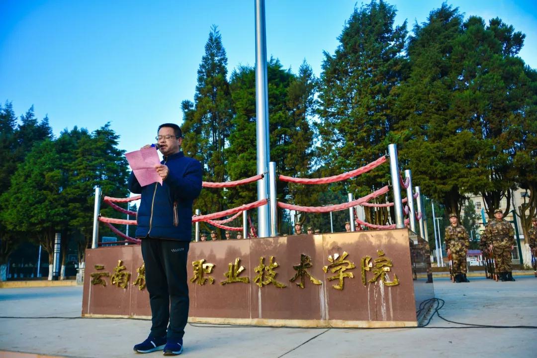 上午8时,在场师生起立注目,举行升国旗仪式;伴随着优美激昂宪法之歌《宪法伴我们成长》的旋律,由民兵连四位同学诵读宪法第一条、第二条、第五条、第三十三条、第四十六条、第五十一条、第五十二条、第五十三条、第五十四条条款;随后全体师生跟随学生代表戈俊同学,在国旗下庄严宣誓:“我是中华人民共和国公民,是一名云南农业职业技术学院学生,面对国旗,我庄严宣誓:忠于中华人民共和国宪法,维护宪法权威……”场面庄严肃穆。